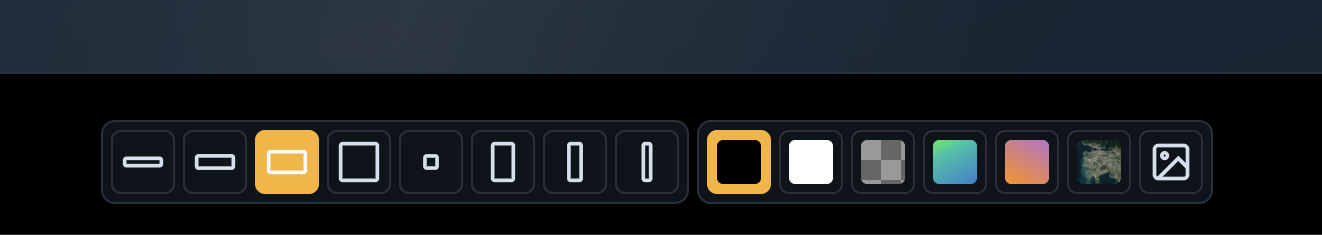 - Toolbar (bottom) — controls for switching aspect ratios and backgrounds
