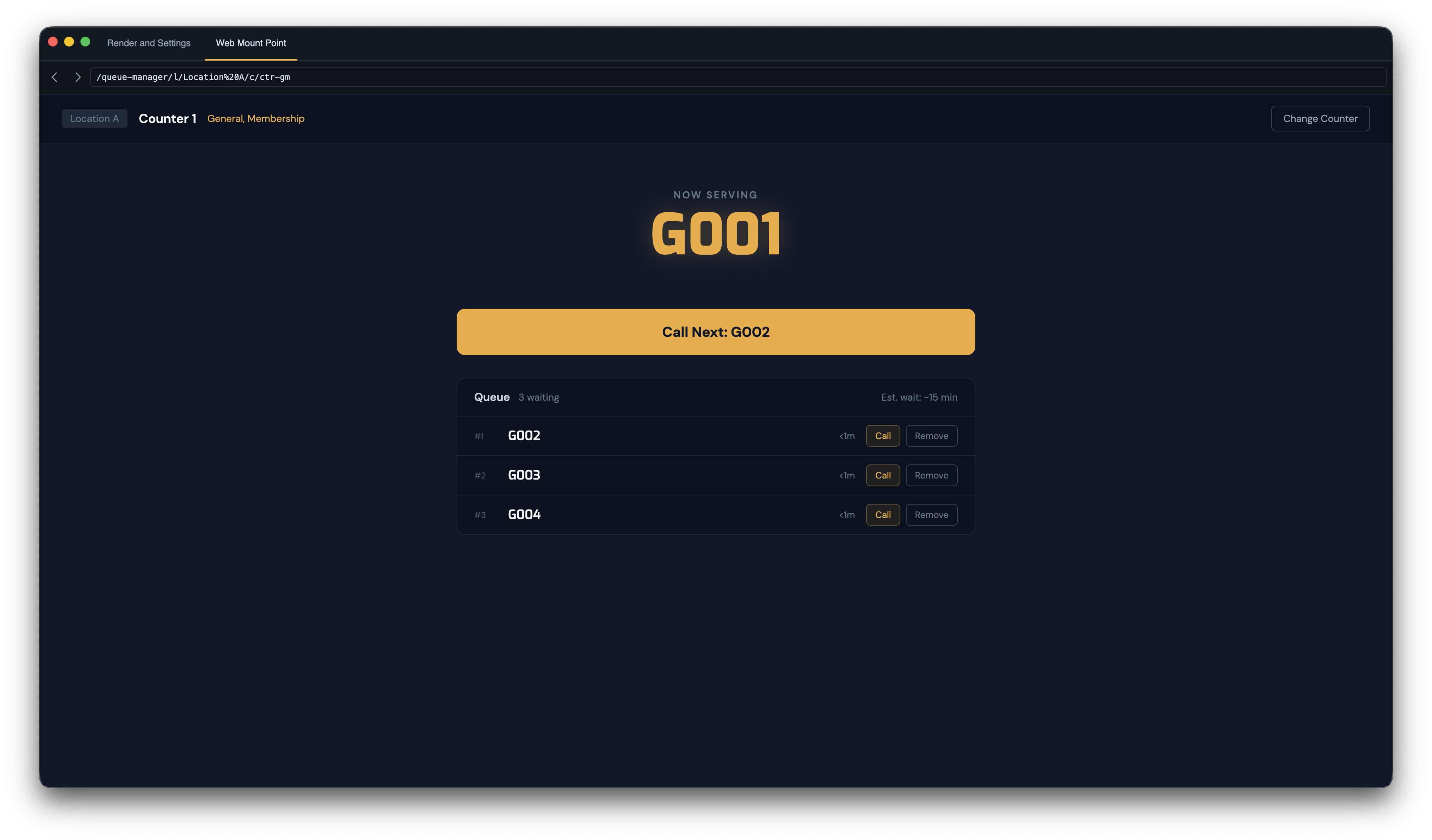 - Render + Settings + Web — adds a browser-accessible web mount point for staff or public interfaces