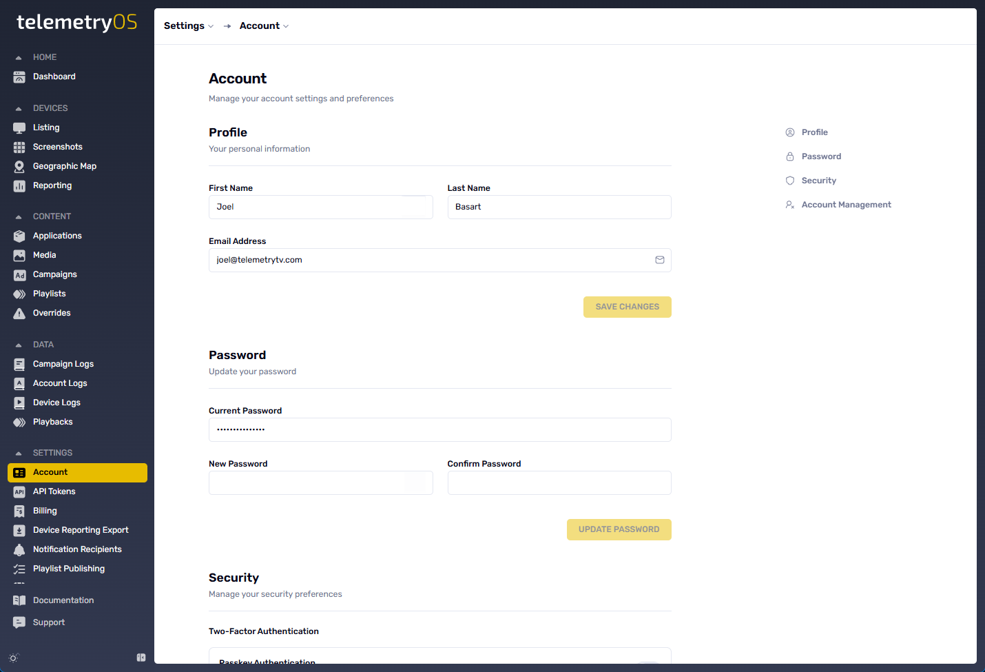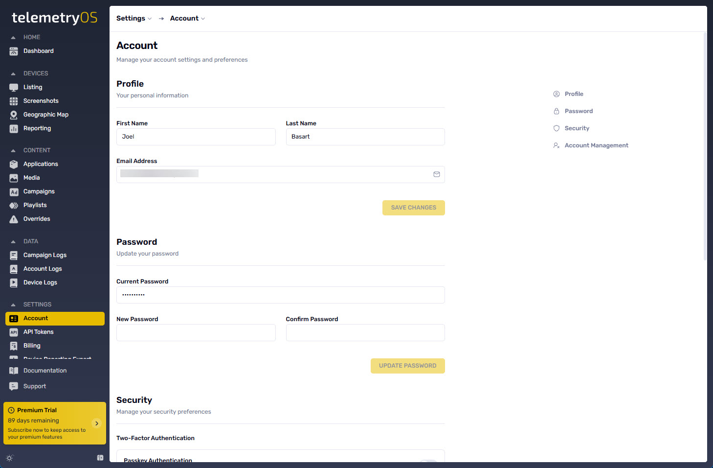 TelemetryOS Edge devices include password protection features for enhanced digital signage content security and control.