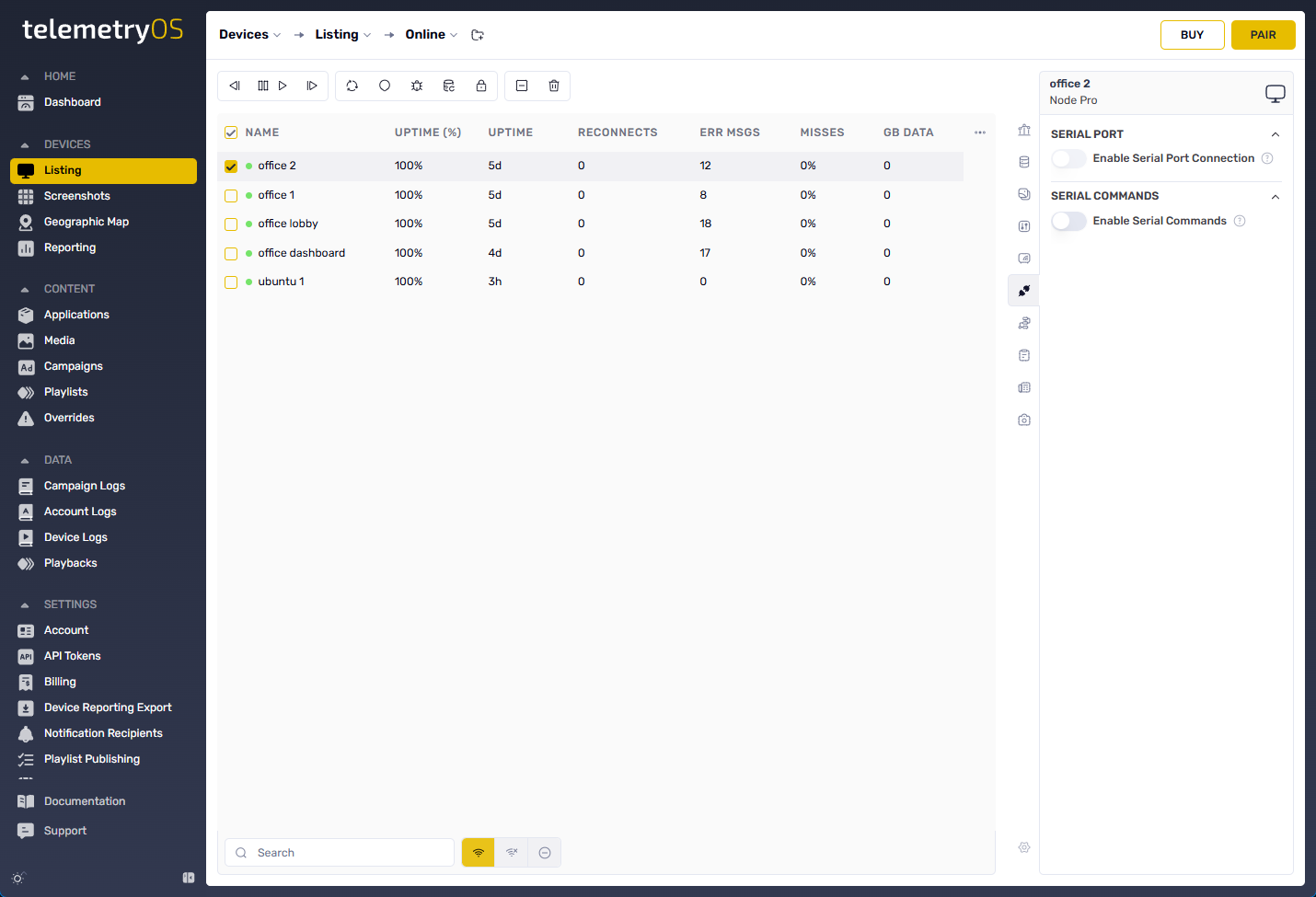 TelemetryOS supports programmatic Serial commands through the TelemetryOS Player app on ChromeOS. This functionality triggers hardware events via USB or RS232 connections, enabling direct control of TV displays, commercial monitors, and digital signage screens from TelemetryOS.