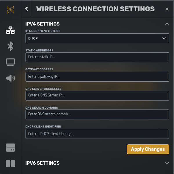Setup screen changes take effect immediately. Network configuration changes may briefly interrupt connectivity during application.