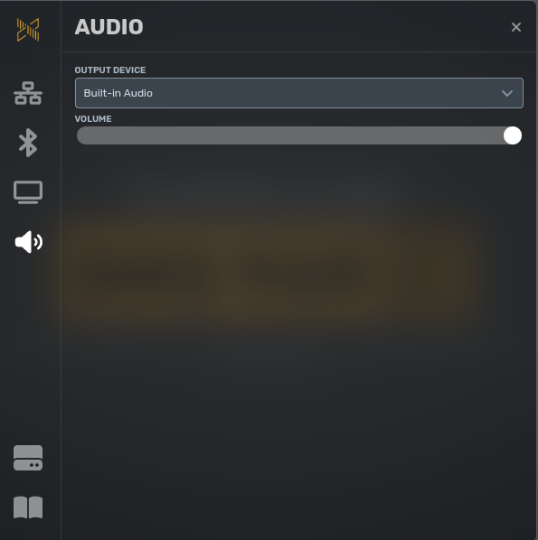- Output Device: Speaker selection (HDMI audio, analog out, USB audio, Bluetooth speakers)