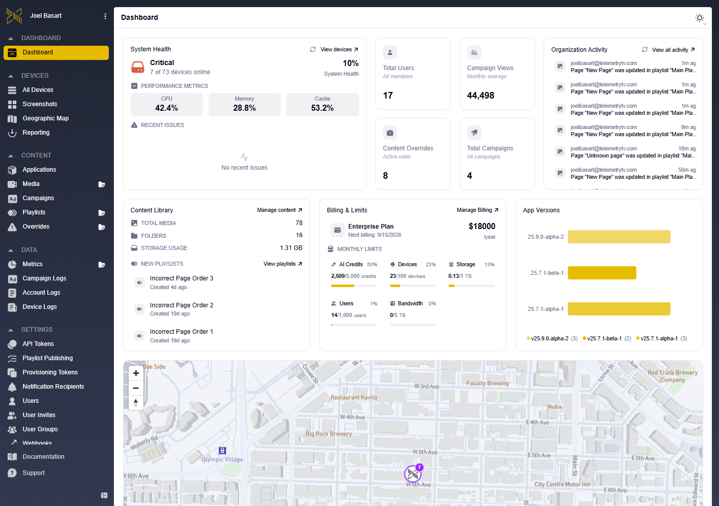 User capacity constraints protect account security and ensure fair resource allocation across subscription tiers. When user limits are reached, account expansion requires subscription tier adjustment or direct coordination with TelemetryOS Support for enterprise deployments. Reseller-managed accounts coordinate capacity adjustments through reseller partners who maintain billing relationships.